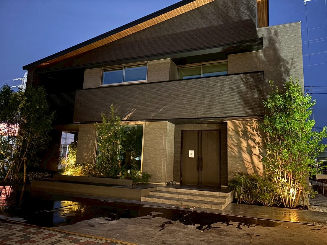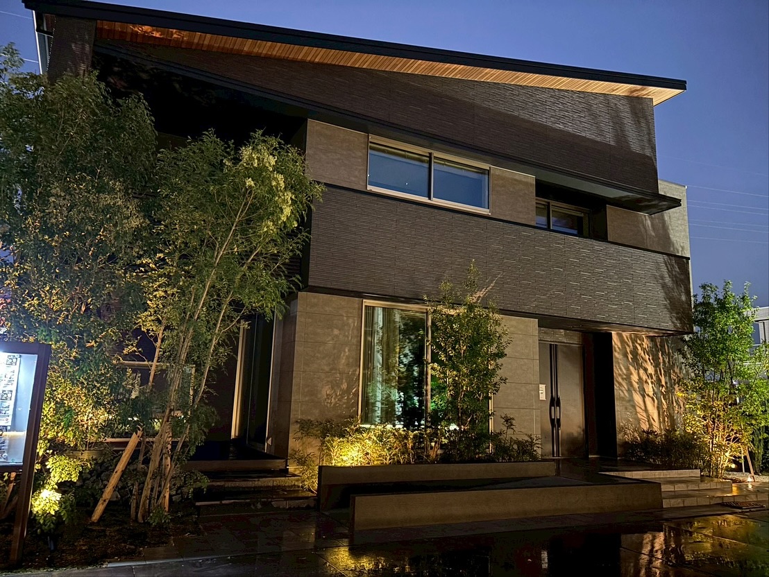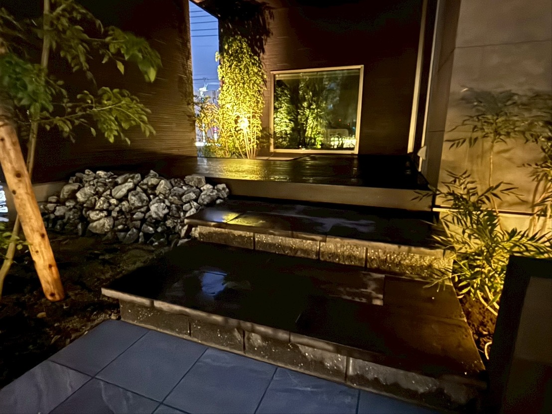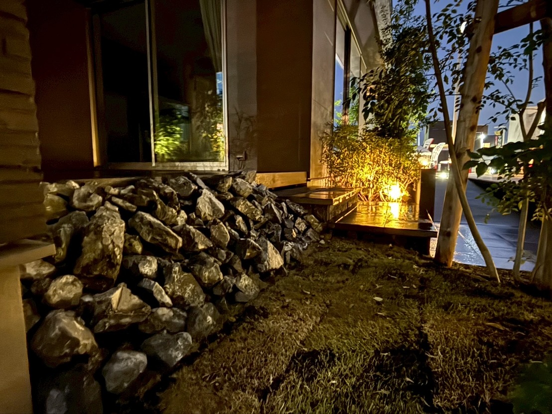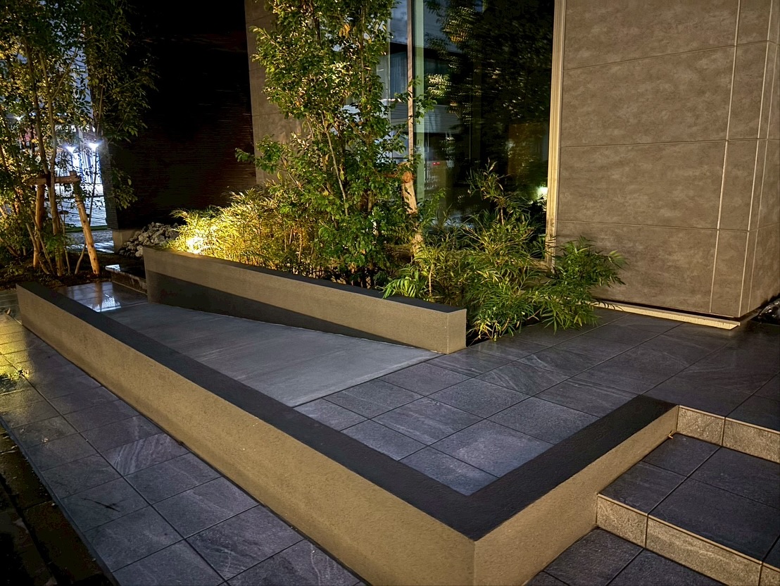 夜間の照明の使い方や、植栽配置、グリ石の置き方、タイルの割り付けなどこだわらせて頂きました😊